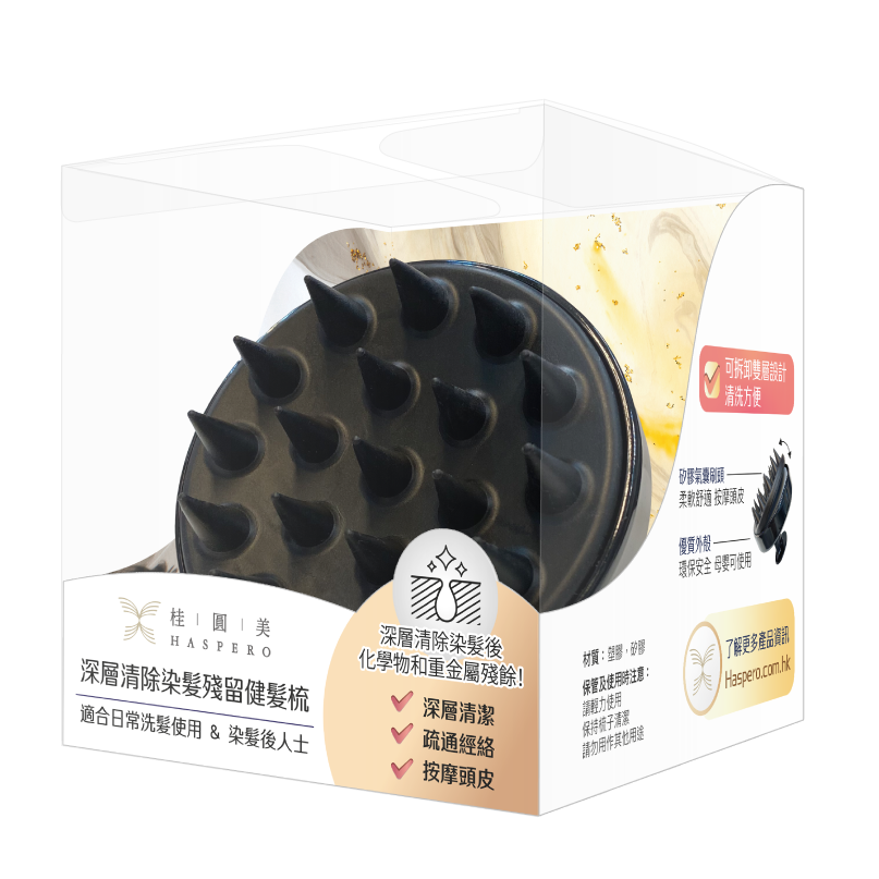 桂圓美深層清除染髮殘留健髮梳能促進血液循環、養生健髮、強健頭皮、刺激頭皮穴位、舒緩繃緊頭皮、疏通經絡、深層清潔頭皮及按摩頭皮。使用方法上,則有以下3個步驟: